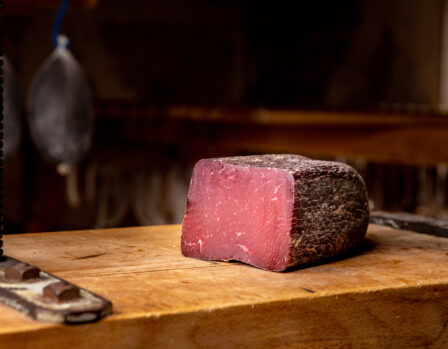 Eine Entdeckungsreise in das jahrhundertealte alpine Trockenfleisch-Handwerk. Degustation von Bündner-, Hirschtrockenfleisch und Salsiz zu einem Glas Wein im „laboratori dal gust“.